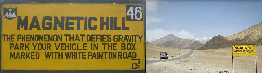Located in India we come across the infamous Gravity Hill, a place where if you decide to take your car for a ride and decide to park it for an awkward reason on the hill and decide to put it out of gear into neutral, the car will start moving UPWARDS, almost as if some mysterious force you can't see was pulling the car upwards.