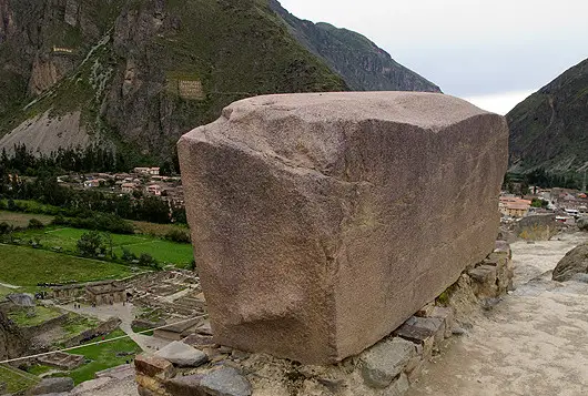 At Ollantaytambo, we have these rectangular shaped stones which were removed from a mountain about sixty miles away which are made out of andesite-- which by the way is incredibly hard to remove, and these sections were so precisely removed that you wouldn't be able to find a single scratch or sharp edge on the surface. What was the power source that ancient mankind could have used in Ollantaytambo to power "machines" that could cut, shape and transport these gigantic blocks of andesite?
