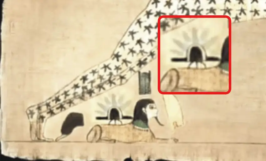 The enigmatic 3,000-year-old vignette from the Djedkhonsuiefankh funerary papyrus found on display in the Cairo Museum illustrates an uncanny scene: a disc-shaped object, depicted as being extremely bright, with a landing gear deployed on top of a Sphinx.