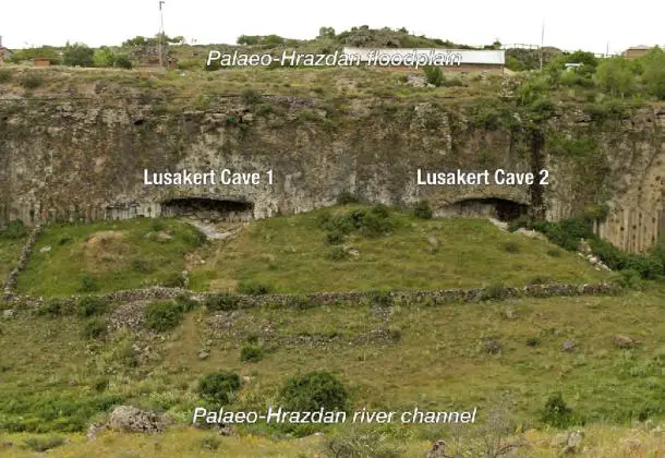 Lusakert Cave 1 and Cave 2 along a channel of the palaeo-Hrazdan River (Via Semantic Scholar)[/caption]