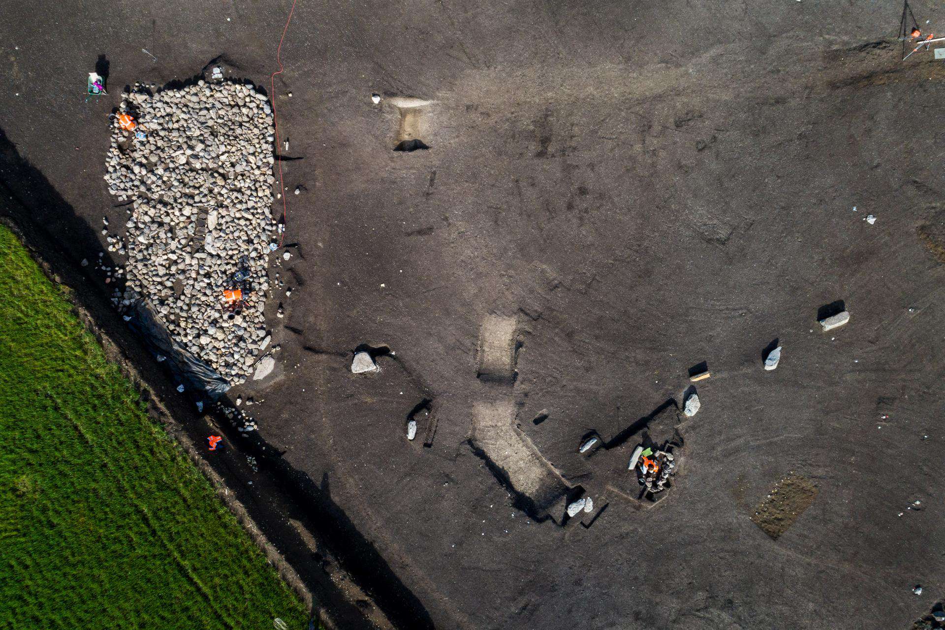 A view of the cairn and grave from higher up. Image via INRAP.[/caption]