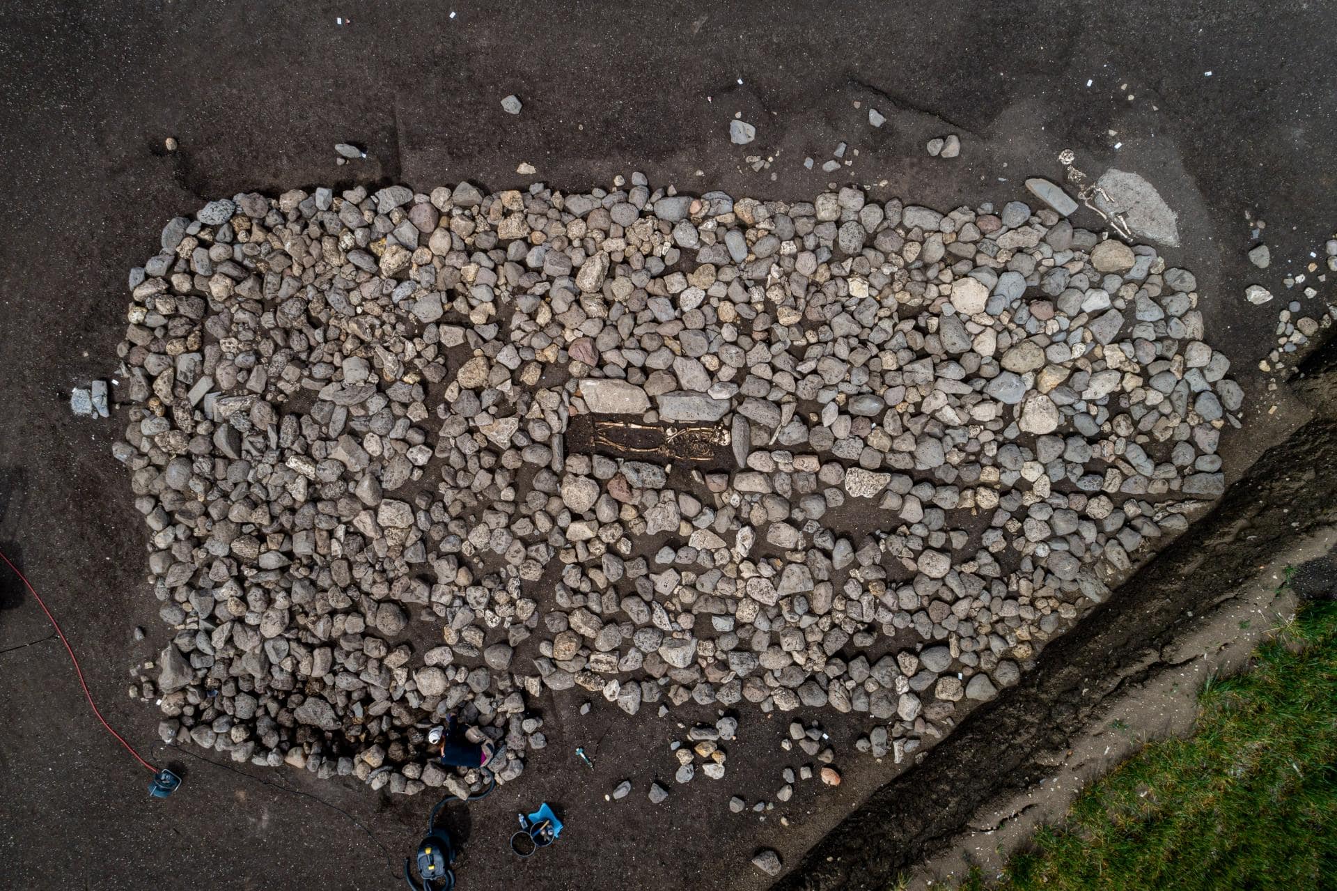 Like the alignment of menhirs, the cairn was finally deliberately removed from the landscape. The stones that constituted its elevation were torn from the monument and thrown into a large pit next to it.The team estimates that at least 30 tons of stones were used to construct the cairn and had been transported from a few miles away. And like a true burial cairn, the team soon found a skeleton.