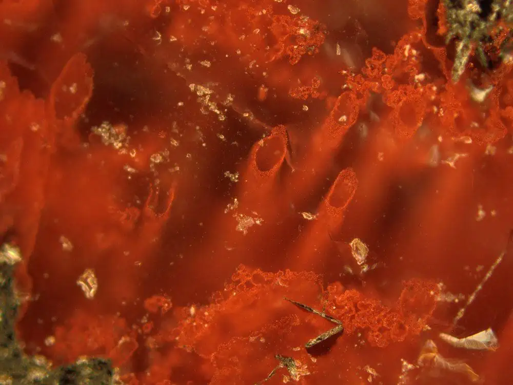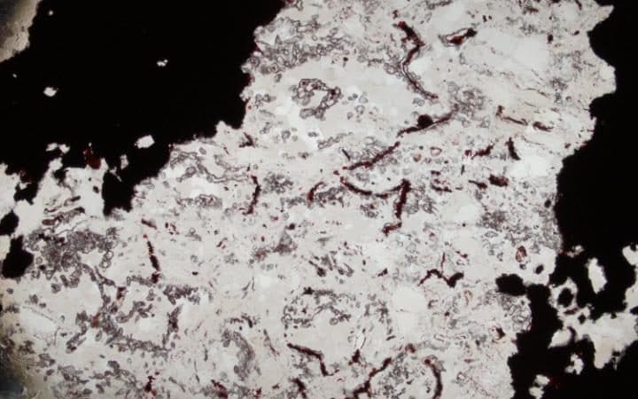 [caption id="attachment_22080" align="aligncenter" width="1000"] The microscopic filaments and tubes, composed of an iron oxide called hematite, appeared within a rock type called jasper.[/caption] A