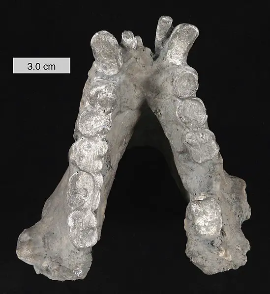Gigantopithecus teeth, which scientists used to extract 1.9 million-year-old DNA. Image via Wikimedia.[/caption]